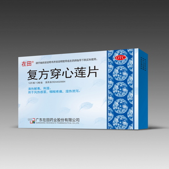 复方穿心莲片 国药准字Z44020664 【性 状】本品为糖衣片,除去糖衣后显棕褐色至黑褐色;味苦。 【成 份】穿心莲、路边青。 【功能主治】清热解毒,利湿。用于风热感冒,咽喉疼痛,湿热泄泻。 【用法用量】口服,一次4片,一日3次。 【贮 藏】密封。